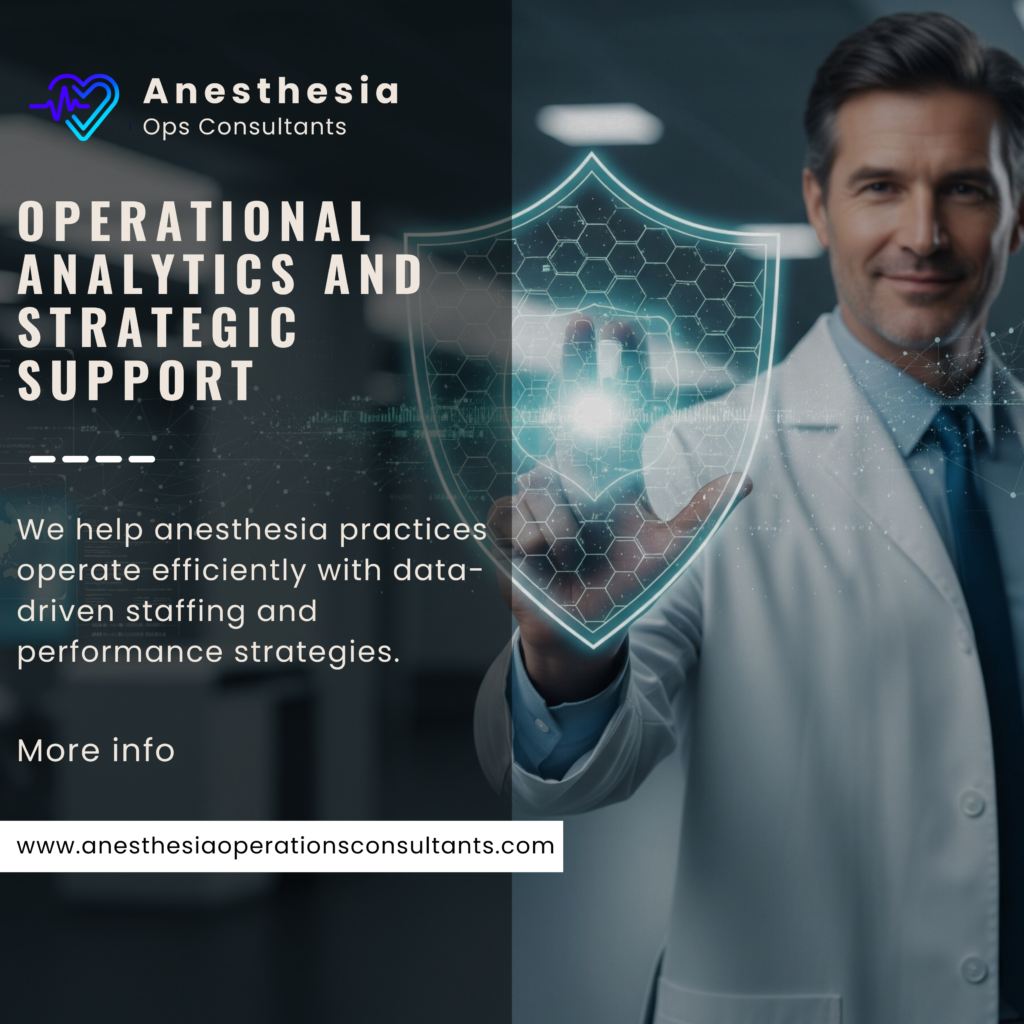 By leveraging real-time data and analytics dashboards, we identify inefficiencies, streamline workflows, and provide actionable recommendations for operational improvements. Whether your focus is improving turnover time, enhancing productivity, or supporting strategic planning for anesthesia services, our team delivers insights that help you make informed decisions and strengthen your practice.